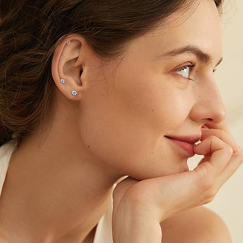 • 3 PAIRS silver stud earrings A SET: These silver stud earrings for women With Stone Size 3mm=0.12" 4mm=0.16" 5mm=0.19", Gauge Size 20G=0.8mm. Lightweight and Comfortable to Wear. Perfect for for ear lobe piercings and cartilage.3 Different Sizes suitable for Multi-Purpose Use in daily life or share with your best friend.