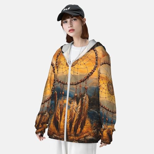 • UV Protection: Our Native American Dream Catcher long sleeve sun shirts features cutting-edge UPF 50+ technology, effectively blocking UV rays to ensure robust sun protection during your outdoor adventures. Designed with a hood to protect the neck, and other sun-exposed areas. Ideal for extended outdoor activities