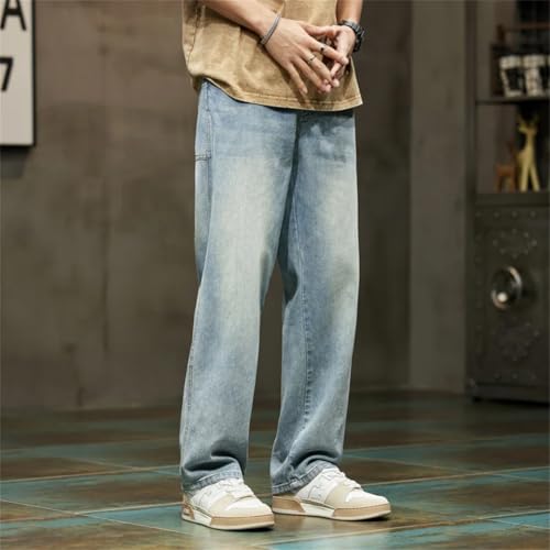 HOT ! Men's Solid Color Jeans Four Seasons Loose Versatile Straight Pants Trendy Workwear Long Pants