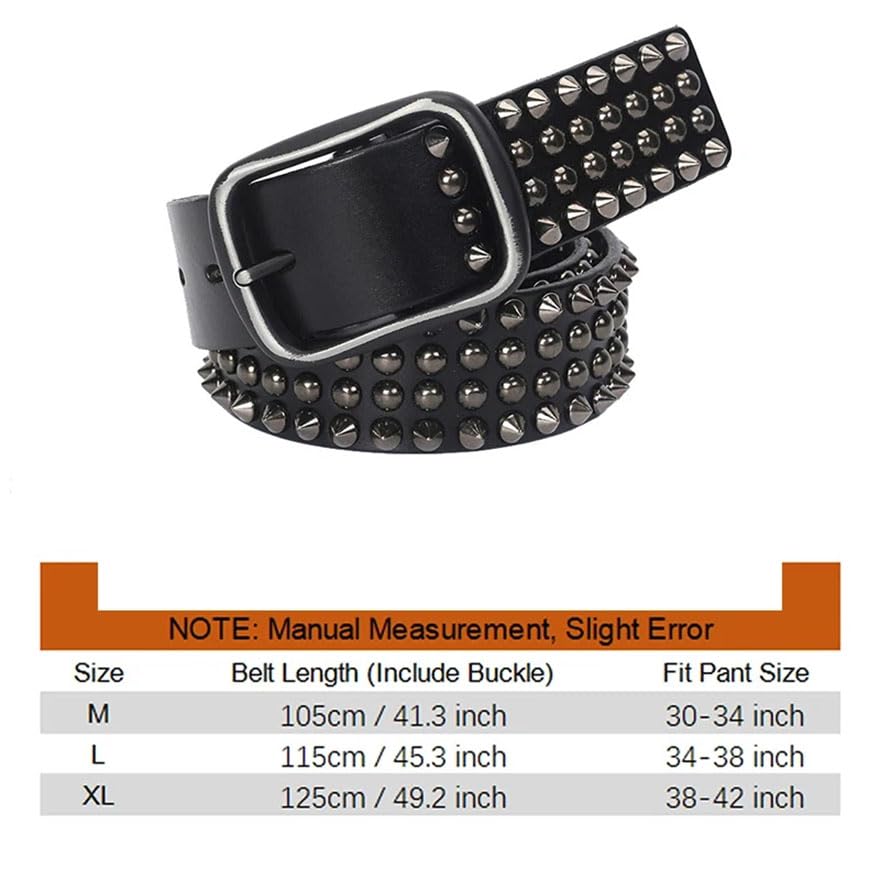 • 2.Rivet Metal Buckle Design: Features vintage metal rivets and pin buckles, punk/rock aesthetic . Adjustable pin buckle allows precise fit for various waist sizes