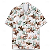 More information about Kentucky Derby Men's Cowboy Horse Racing Shirt Cuban Collar Shirt Short Sleeve Vintage Retro Vacation Holiday Festival Summer Spring Camp Collar Shirt 3D Print Funny Kentucky Derby Shirts White