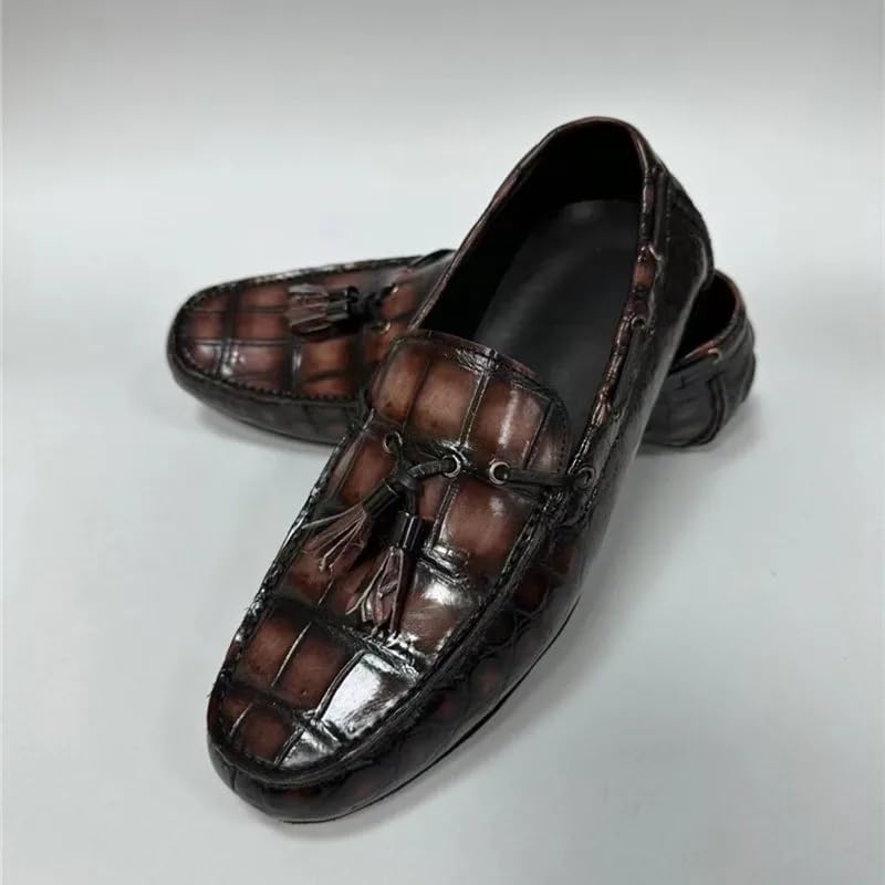 Authentic Crocodile Skin Gradual Color Men's Casual Soft Moccasins Shoes Genuine Real Alligator Leather Male Chic Slip-on Flats 1