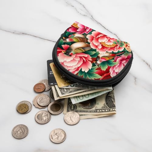 Why Choose Portable Coin Purse Chinese-Bulbuls-Peonies Mini Zippered Money Pouch Card Holder?