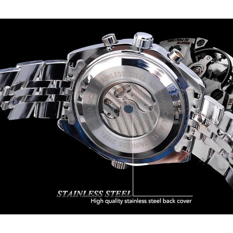 JARAGAR Mechanical Watch for Men Aviator Series Military True Men Sport Automatic Watch Luxury Stainless Steel Mechanical Male Clock Hour Luminous Wristwatch Blue Glass 5