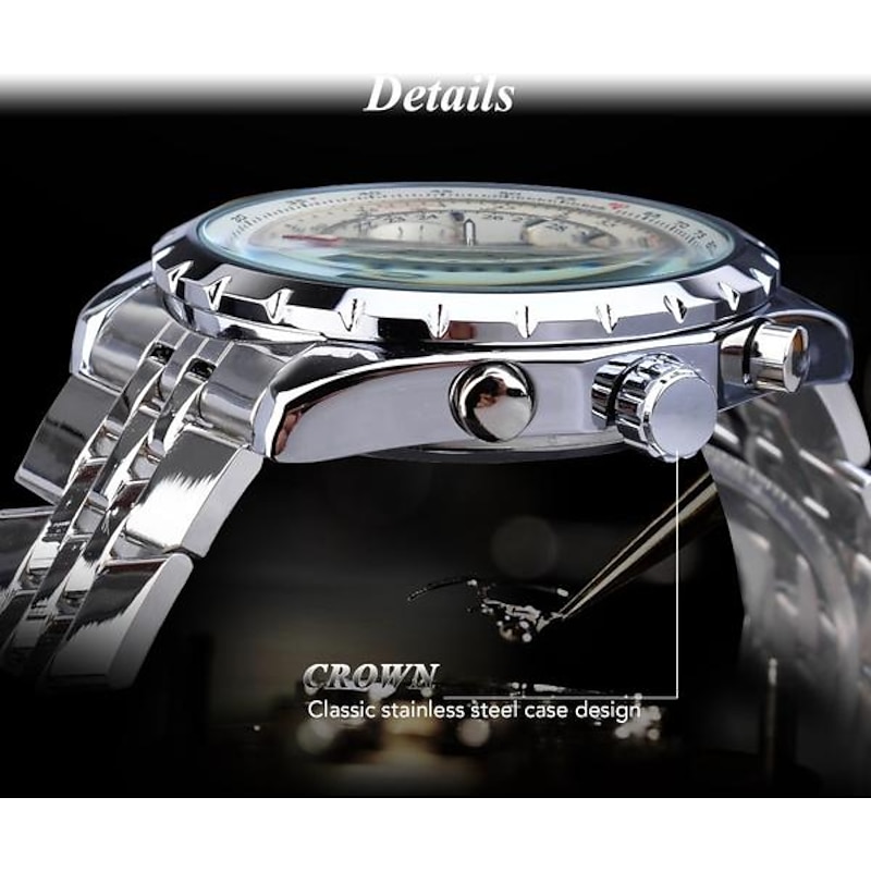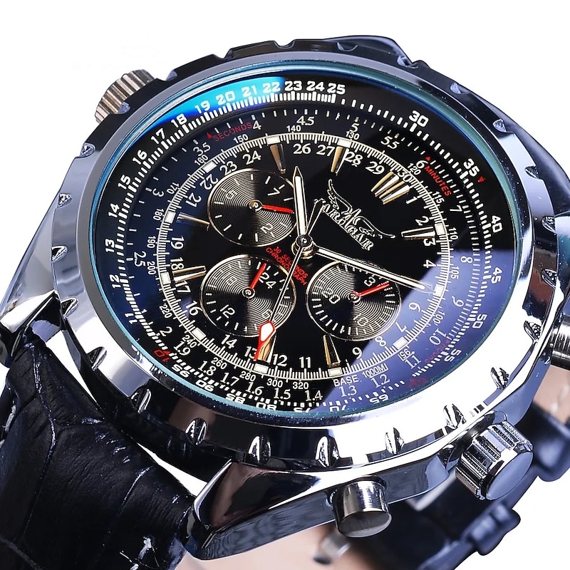 JARAGAR Mechanical Watch for Men Aviator Series Military True Men Sport Automatic Watch Luxury Stainless Steel Mechanical Male Clock Hour Luminous Wristwatch Blue Glass 4