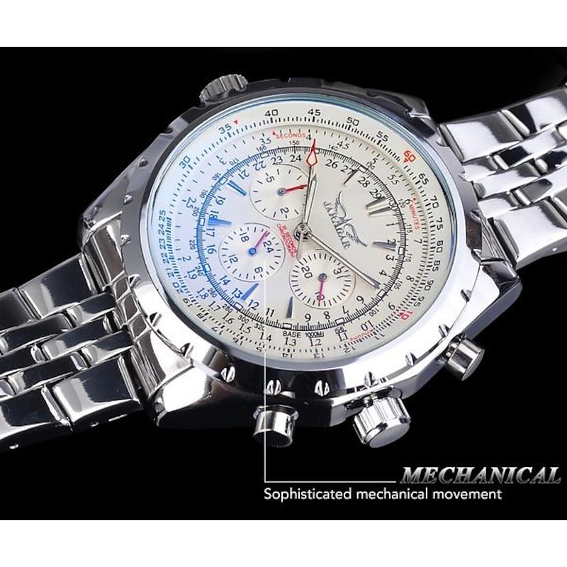 JARAGAR Mechanical Watch for Men Aviator Series Military True Men Sport Automatic Watch Luxury Stainless Steel Mechanical Male Clock Hour Luminous Wristwatch Blue Glass 20
