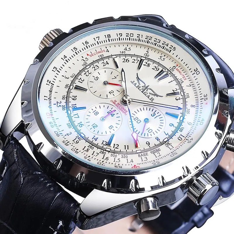 HOT ! JARAGAR Mechanical Watch for Men Aviator Series Military True Men Sport Automatic Watch Luxury Stainless Steel Mechanical Male Clock Hour Luminous Wristwatch Blue Glass