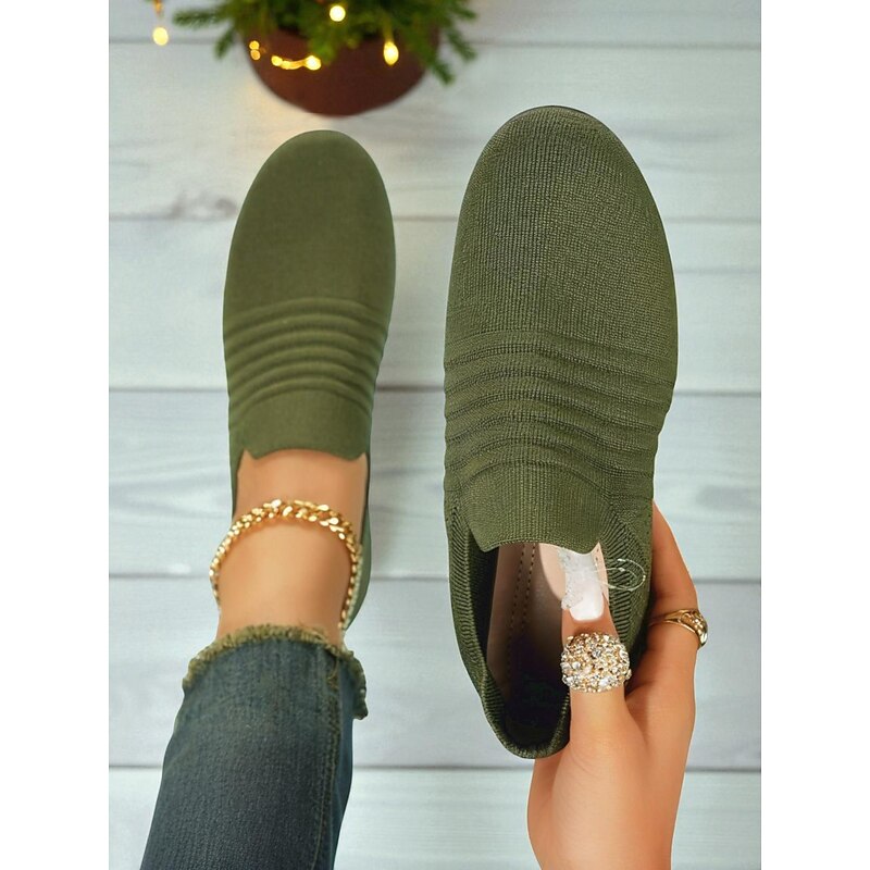 Women's Slip-On Flyknit Sneakers – Lightweight Breathable Casual Shoes for Walking, Travel, Christmas and Everyday Wear 5
