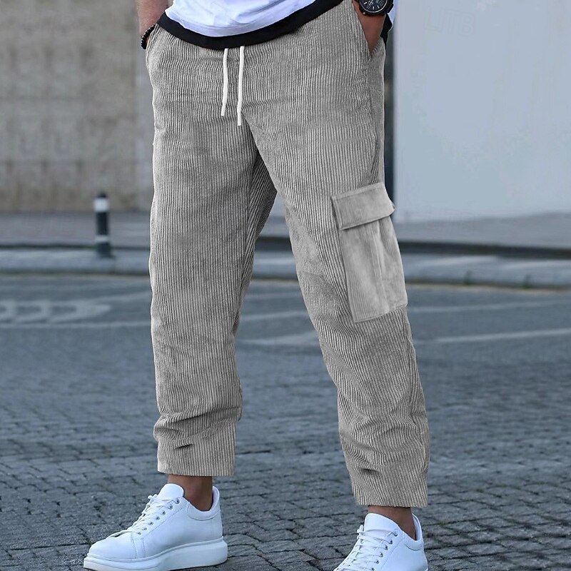 : Made from a high-quality polyester corduroy fabric, these men's cargo pants offer a soft texture and warmth, making them perfect for spring and fall seasons. The micro-elastic material ensures comfort and flexibility throughout the day.