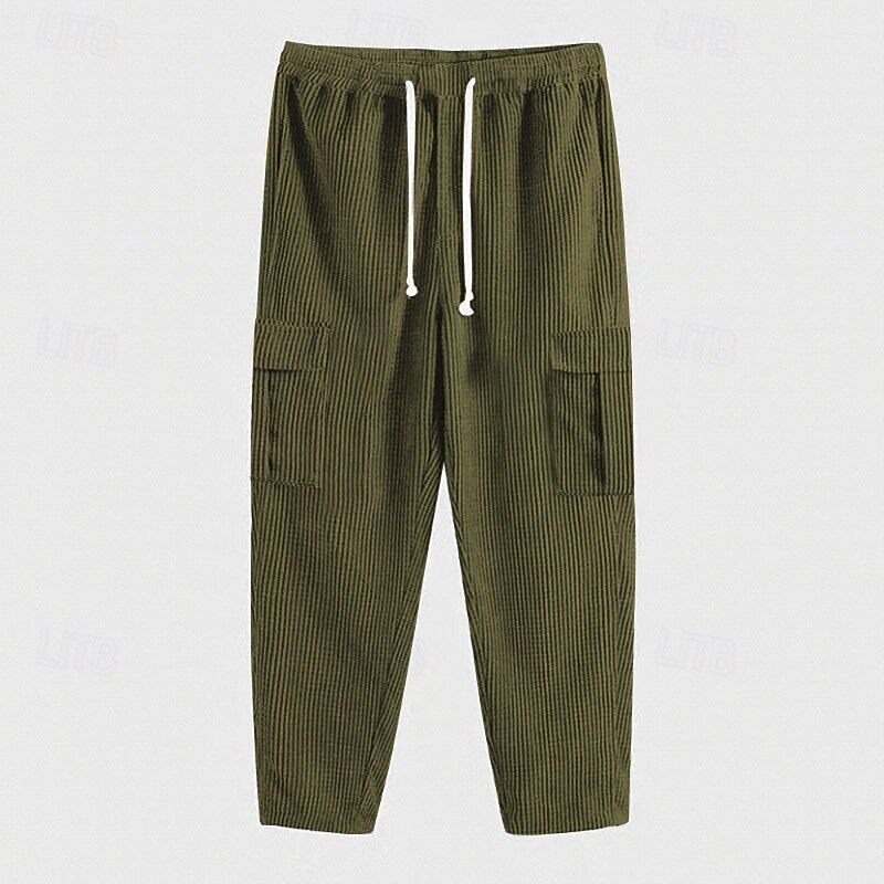 More information about Men's Cargo Pants Corduroy Pants Trousers Pocket Elastic Waist Drawstring Plain Comfort Sports Outdoor Daily Fashion Casual ArmyGreen Black Micro-elastic