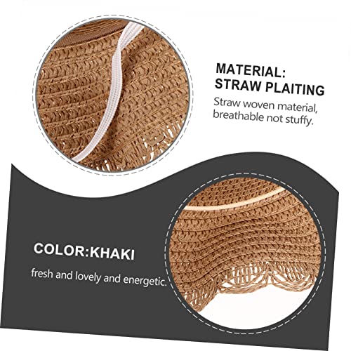 TOYANDONA Straw Woven Sun Block Hat with Wide Brim and Shoulder Bag UV Protection Summer Beach Hat for Fashionable Straw Sunhat with Windproof Design Khaki 5