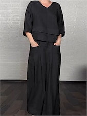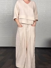 More information about Women's Fashion Streetwear Pants Sets Bolero Top 3/4 Length Sleeve V Neck Solid Color Outdoor Work Casual Black White Pink Spring Loose Fit