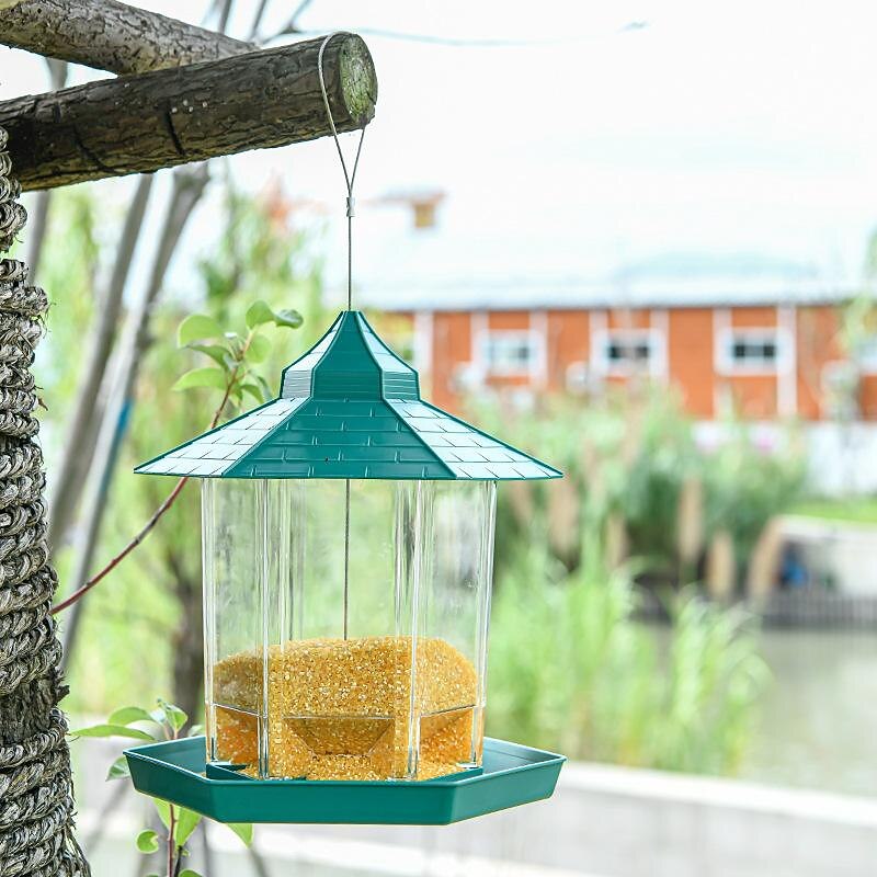 HOT ! Bird Feeder, Plastic Hanging Wild Bird Feeder for Outdoor Garden Yard Patio Backyard Decoration, Hexagon Shaped with Roof