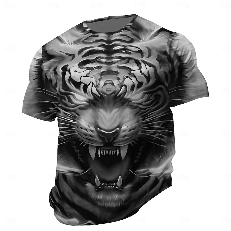 Highlights [Fabric] : Crafted from high-quality polyester, this men's t-shirt ensures a comfortable and breathable wear, perfect for spring and summer seasons. The micro-elastic nature of the fabric provides a tailored fit that adapts well to various body types. [Fit] : Featuring a regular fit, this t-shirt offers a versatile silhouette that complements a range of styles and occasions, giving it a refined yet casual appeal. [Design Highlights] : The t-shirt boasts a dynamic 3D print of a bold tiger design in vibrant orange, red, gray, and purple hues. The intricate details create a striking, contemporary look, while the classic crew neck and short sleeves add to its fashionable and edgy flair. [Occasions] : Ideal for street, daily, and sportswear, this t-shirt suits individuals seeking an adventurous and bold style statement. It is perfect for casual outings and social gatherings where a standout look is desired. [Size Range] : Available in sizes S, M, L, XL, 2XL, and 3XL, ensuring a suitable fit for a broad range of adults.