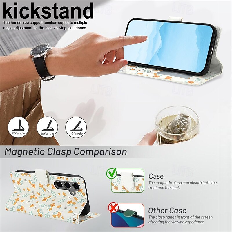 More information about Phone Case For Samsung Galaxy S25 S25 Edge S24 S24 FE S23 Ultra Plus S22 Plus Ultra A55 5G A14 A34 A54 Wallet Case Magnetic Card Slot Shockproof Retro Flower Floral PC PU Leather