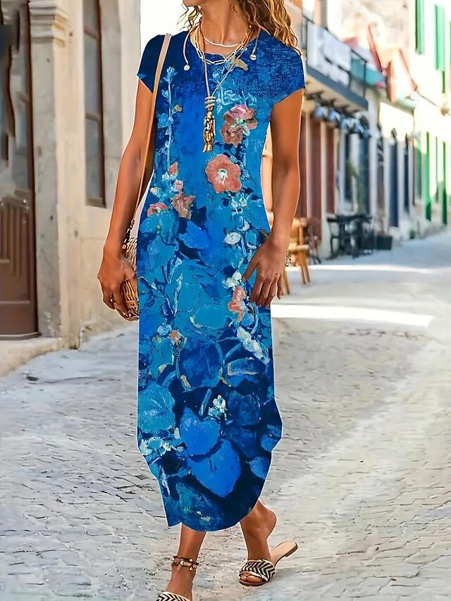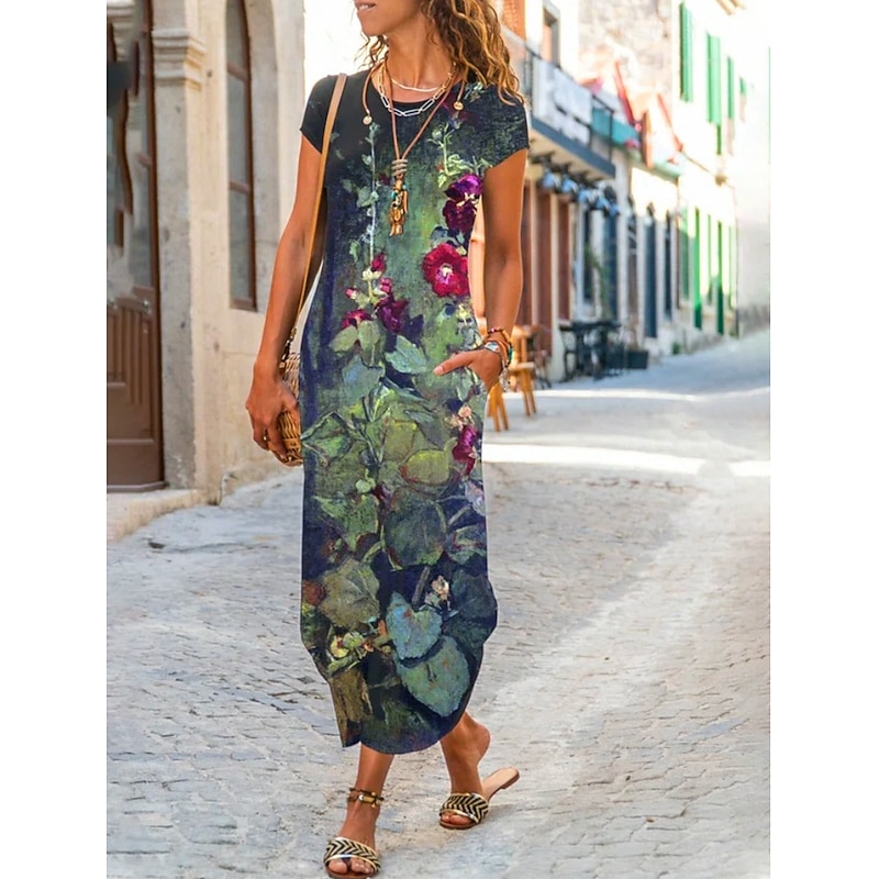 More information about Women's Maxi Dress Sheath Dress T Shirt Dress Tee Dress Casual Boho Wedding Guest Daily Date Floral Graphic Long Sleeve Crew Neck Blue Green Gray Spring Fall Winter Autumn