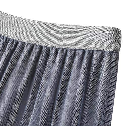 Women's High Waist Flowy Pleated Maxi Skirt Women's Tulle Skirt Elastic Layered Pleated Mesh Flowy A-line Midi Skirt, Grey 7