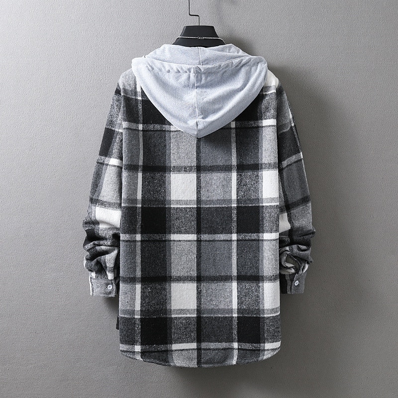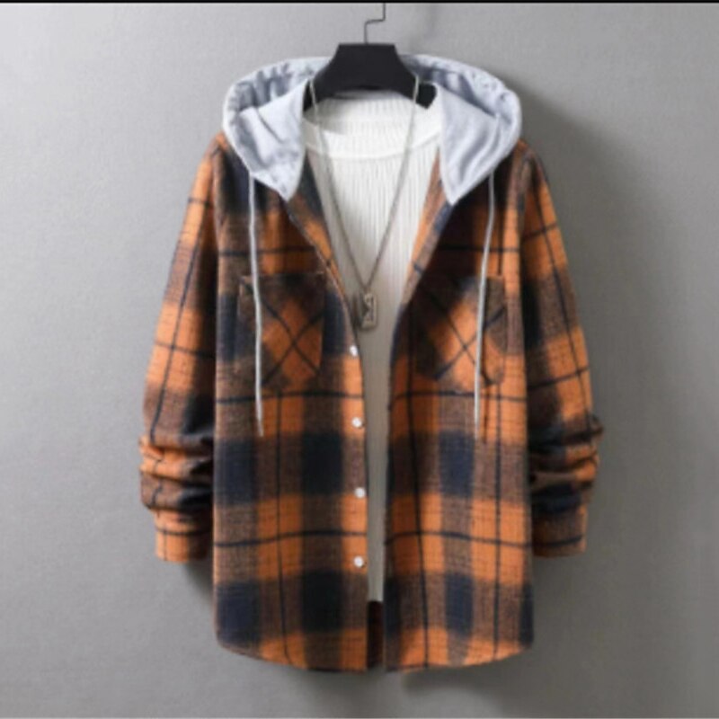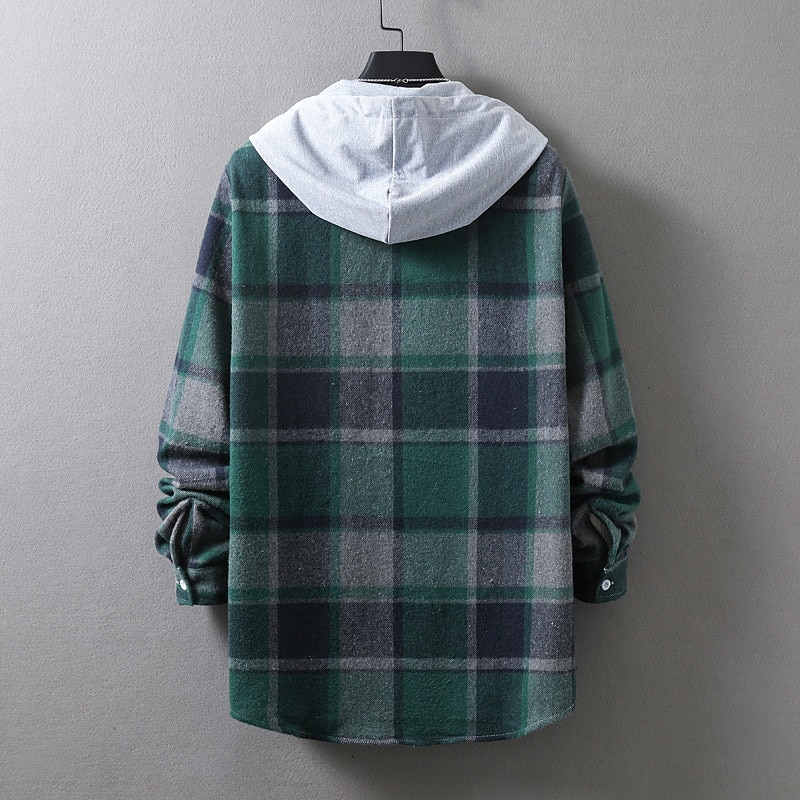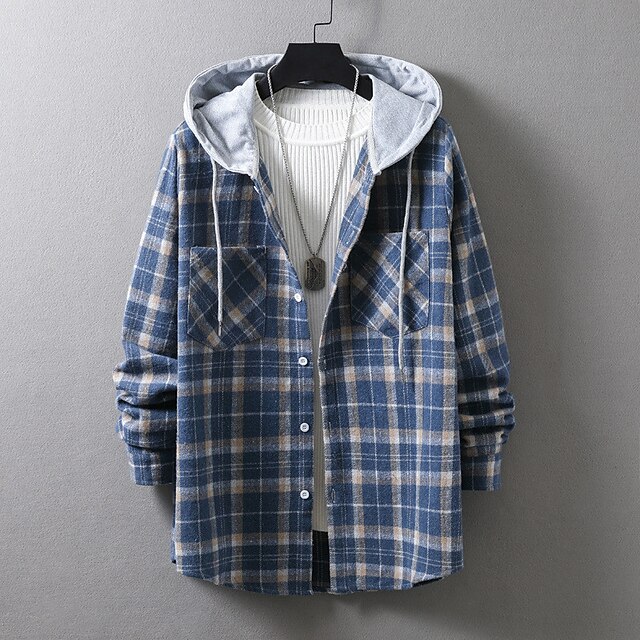 More information about Men's Shirt Casual Shirt Plaid Shirt Button Up Shirt Overshirt Plaid / Check Outdoor Daily Wear Yellow Blue Orange Green Long Sleeve Hooded Fall & Winter Clothing Apparel Front Pocket