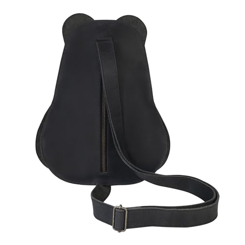 More information about Hide & Play, Panda-Shaped Shoulder Bag, Crossbody Bag, Messenger Bag, Travel Bag for Men and Women, Full Grain Leather, Handmade, Charcoal Black