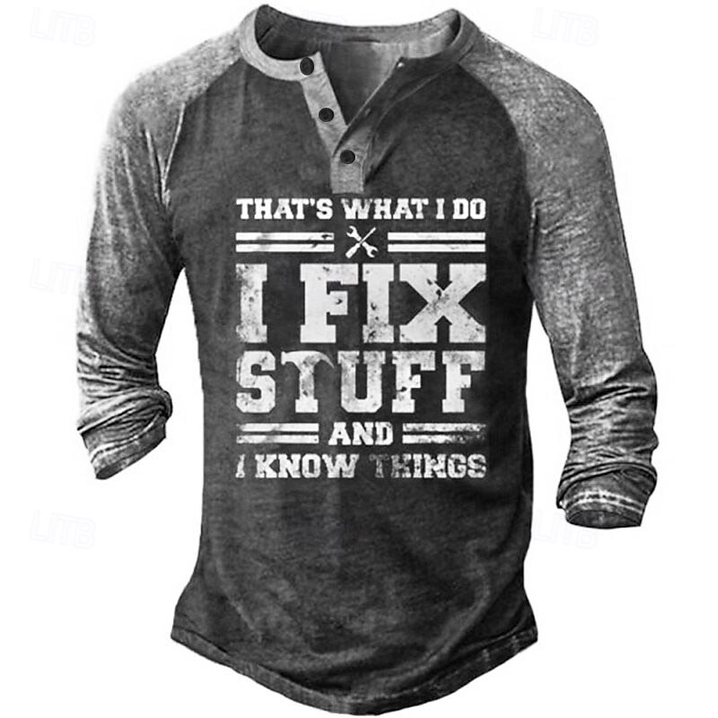 More information about Men's Graphic Letter I Fix Stuff THAT'S WHAT I DO I FIX STUFF AND I KNOW THINGS T Shirt Henley Shirt Tee Long Sleeve 3D Print Basic Classic Casual Outdoor Daily Sports Spring & Summer Black Army