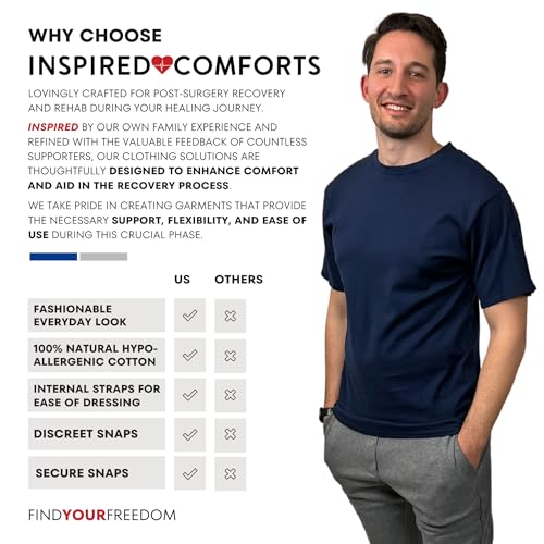 HOT ! Inspired Comforts Unisex Right Shoulder & Side Access Post Surgery & Rehab Snap Shirt