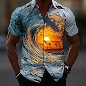 More information about Men's Optical Illusion Ocean Sunset Shirt Summer Shirt Button Up Shirt Short Sleeve Hawaiian Holiday Streetwear Summer Spring Turndown 3D Print Collared Shirts Blue 1# Blue