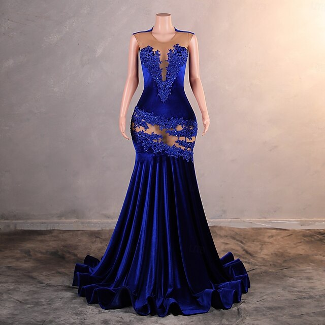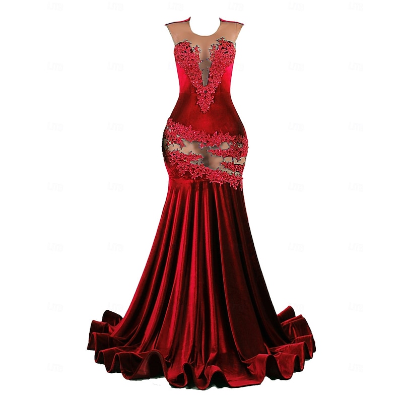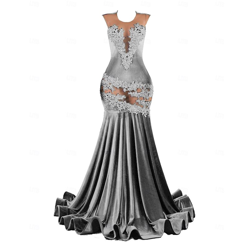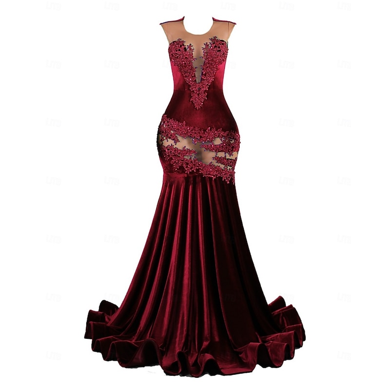 More information about Mermaid / Trumpet Evening Gown Elegant Dress Formal Prom Court Train Short Sleeve Crew Neck Sequined with Pearls Appliques