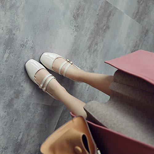VOKLIN Women's Mary Jane Pump Oxford Retro Square Toe Buckle Strap Patent Leather Chunky Mid Heel Dress Shoes 4