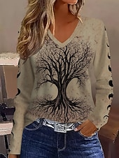More information about Women's T Shirt Graphic Plants Vintage Stylish Classic Long Sleeve V Neck Regular Tops Daily Print Khaki Spring Fall Winter