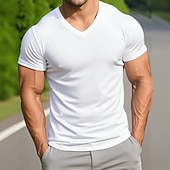 More information about Men's Tee Top Cotton Blend T-Shirt Short Sleeve Short Sleeves V Neck Summer All Seasons Solid Color Plain Designer Basic Modern Contemporary V Neck Vacation Street Casual Black White Top Tee for Men