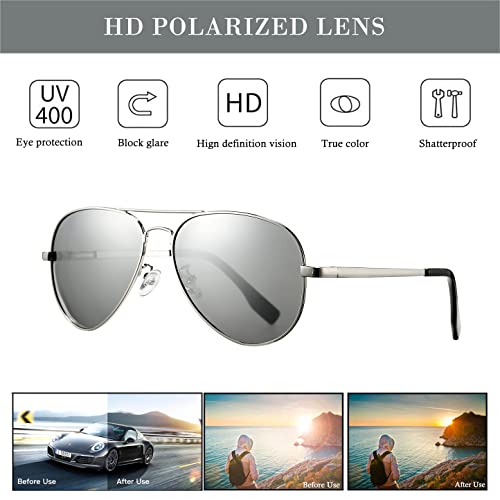 HJSTES Polarized Aviator Sunglasses for Women Men Classic Metal Shades Mirror Lens 100% UV Blocking, 58mm 4
