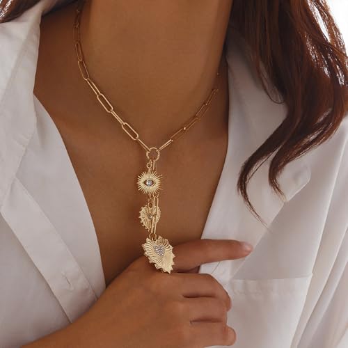 HOT ! HETICA Chunky Gold Necklace for Women - Evil Eye Heart Charm Necklace Zirconia Charm Necklace Fashion Gold Jewelry Necklace for Women