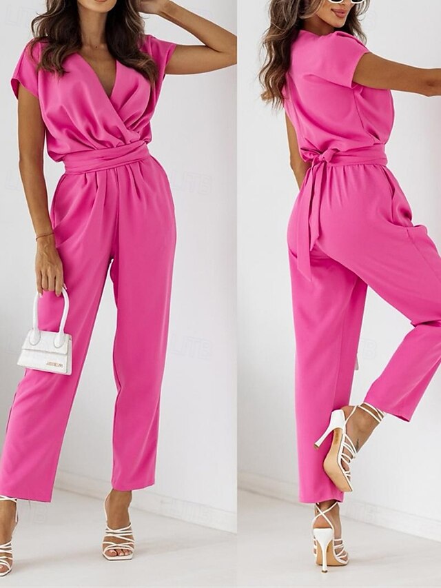 More information about Women's Normal2 Pieces SetsStreetwear Casual Half Sleeve V Neck Solid Color Pocket Belted Street Daily Going out Black Fuchsia Apricot Summer Regular Fit