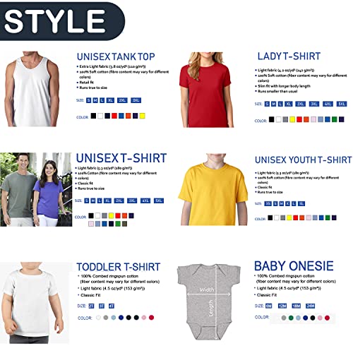 • Available in many styles (tank top,T-Shirt, long sleeves, sweatshirt, hoodie, baby onesie), many sizes (S => 5XL) for the whole family.