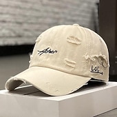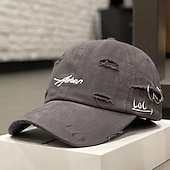 Highlights [Fabric:] Crafted from durable cloth material, this women's baseball cap ensures comfortable wear and long-lasting durability. The breathable fabric is ideal for keeping you cool during warm spring and summer days, while its portable structure allows for easy carrying and storage. [Style:] Featuring a classic baseball cap design, this hat embodies a relaxed and stylish look suitable for various casual settings. The distressed elements with intentional rips and tears add a trendy, vintage notability, perfect for adding character to your ensemble. [Design Highlights:] The cap stands out with its unique embroidery and distressed aesthetic. Embellished with embroidered letters on the front, the cap also features small metal rings and "LOL" stitching on the side, contributing to its modern and edgy appeal. The adjustable strap at the back allows for a customized and comfortable fit. [Occasions:] This cap is perfect for street style, daily adventures, and weekend outings. Whether you're taking a leisurely stroll or heading to a casual gathering, this cap adds a chic touch to any outfit while providing essential sun protection. [Size Notice:] Available in one-size, the cap's design offers adjustable fitting to comfortably accommodate various head sizes, providing both practicality and style for diverse occasions.