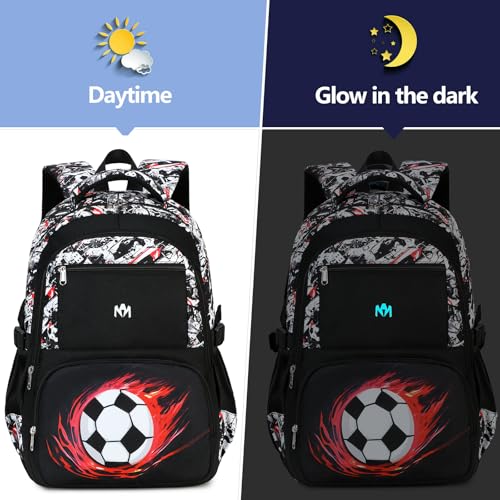 • LARGE CAPACITY - 2 large compartments and 2 front pocket to meet your daily needs: the large main compartment fits a 15.6" laptop, middle compartment that is great to put your folder in and 2 front pocket to store afternoon snack and other small items.2 side bottle pockets for safely storing water bottle and an umbrella.Keep your kids backpack tidy and clean, simplify your life.PS:The pattern will emit a blue light in the dark after absorbing sunlight