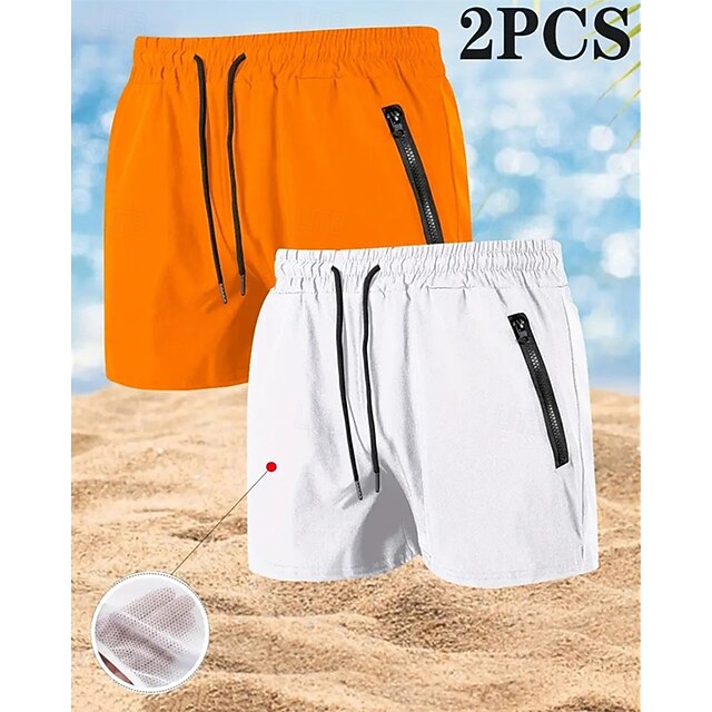 Men's Swim Trunks Swim Shorts Board Shorts Plain Quick dry Breathable Elastic Waist Drawstring Vacation Beach Hawaiian Casual White+Orange Black+Gray 2