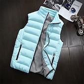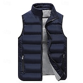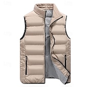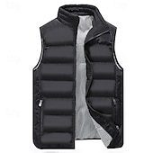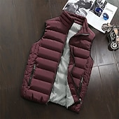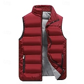 More information about Men's Puffer Vest Vest Gilet Vacation Daily Date Fashion Casual Fall Winter Pocket Polyester Warm Comfortable Solid Color Zipper Stand Collar Regular Fit Black Light Green Wine Red Vest