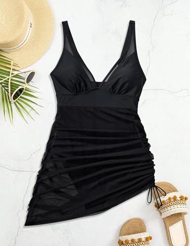 SUUKSESS Women Mesh One Piece Swim Dress Swimsuit Tummy Control Bathing Suit 5