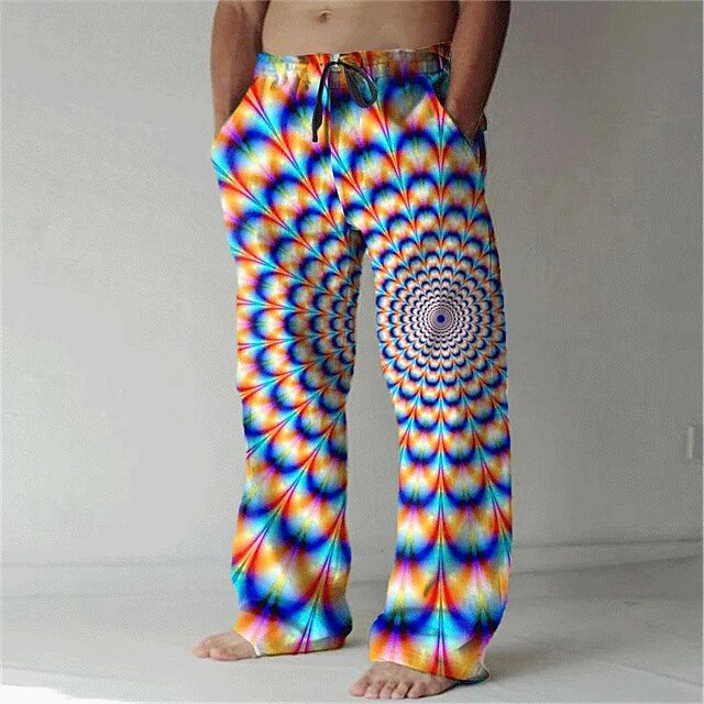 HOT ! Men's Pants Trousers Graphic Outdoor Holiday Hawaiian Orange Green Inelastic