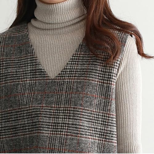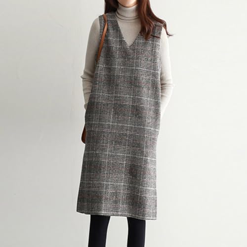 More information about Women's Fall Winter Plaid Wool Overall Dress Casual Business Sleeveless Midi Tank Vest Dress Casual Fashion Dresses