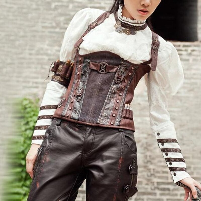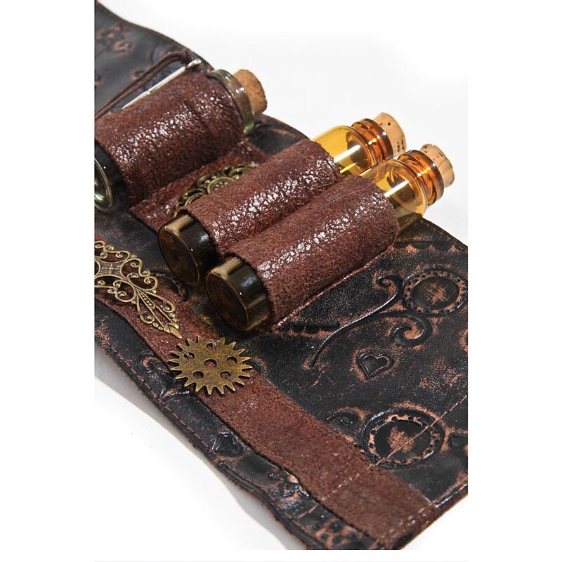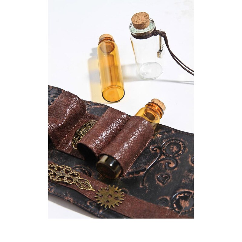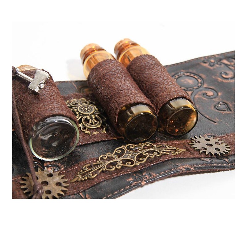 Highlights Material : Spandex,Polyester,Synthetic Leather,Alloy Color : Brown Length : 29cm/11.42inch;Width :9cm/3.54inch Vintage Gothic Retro Unisex Brown Faux Leather Steampunk Wristband Cuff with Vials Great for everyday use or costume Steampunk Accessories