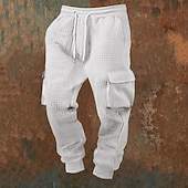 More information about Men's Sweatpants Joggers Trousers Waffle Pants Drawstring Pocket Elastic Waist Plain Comfort Sports Outdoor Daily Fashion Casual Black White Micro-elastic