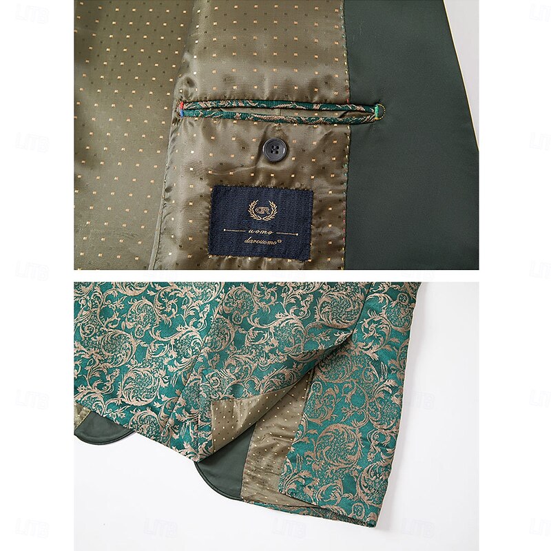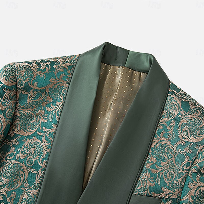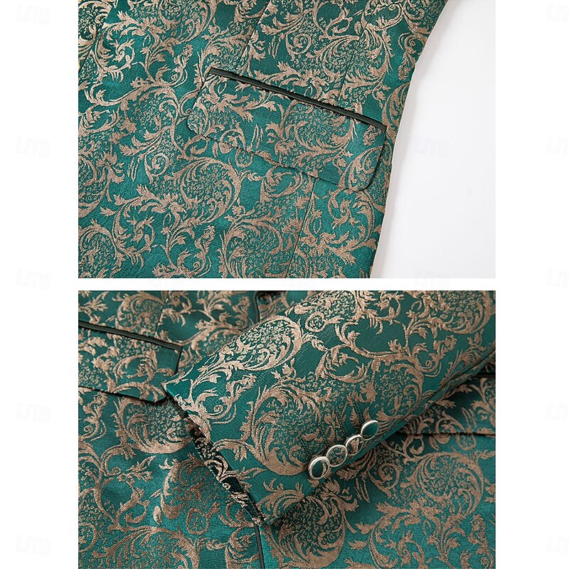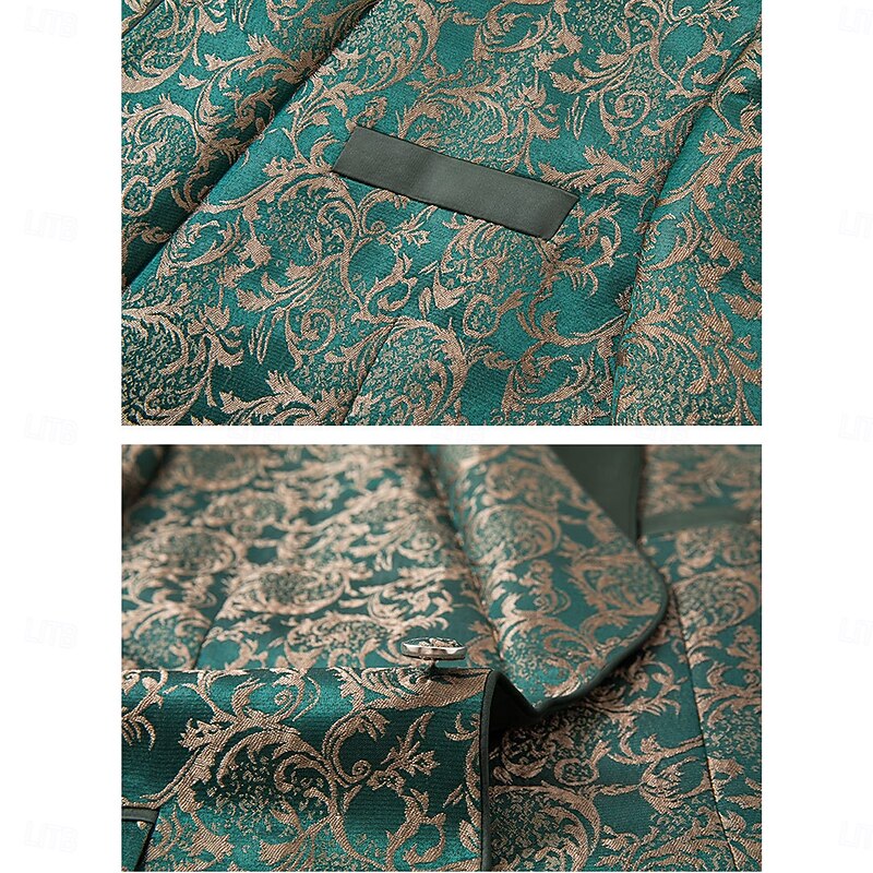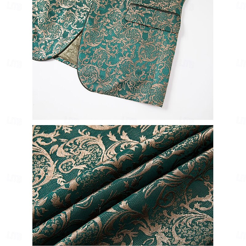More information about Men's Wedding Stage Party Suits Shawl Lapel Green Formal Jacquard Floral Slim Fit 3 Piece Single Breasted One-button