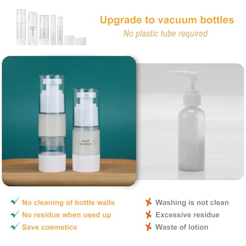 • 【Multi-Combination Set】Beveetio 19 packs leak proof travel bottles set, portable & lightweight, easy to carry & clean. You will get( 4 Silicone Travel Bottles+ 2 Jars + 1 Vacuum Spray Bottle+ 1 Vacuum Pump Bottle + 1 Sparkling bottles + 1 Perfume dispensing bottles+3 Mini Vacuum Pump Bottles + 2 Page Label +1 Funnel+ 2 Scoopers+ 1 Clear Bag) Perfect companion for your travelling!
