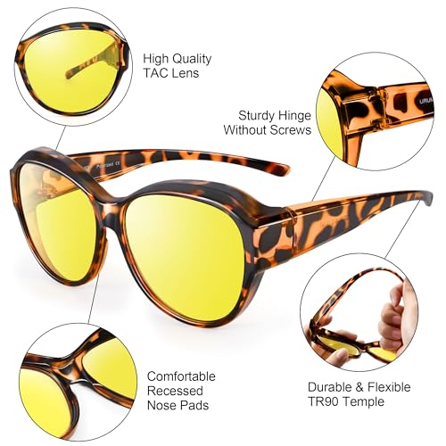 • HIGH-QUALITY MATERIALS: URUMQI night driving glasses for women are made by durable and flexible TR90 frame, unbreakable 1.1mm thickened TAC lenses, sturdy internal hinge structure, comfortable recessed nose pads, ergonomic temple end-tips, all details ensure your perfect performance