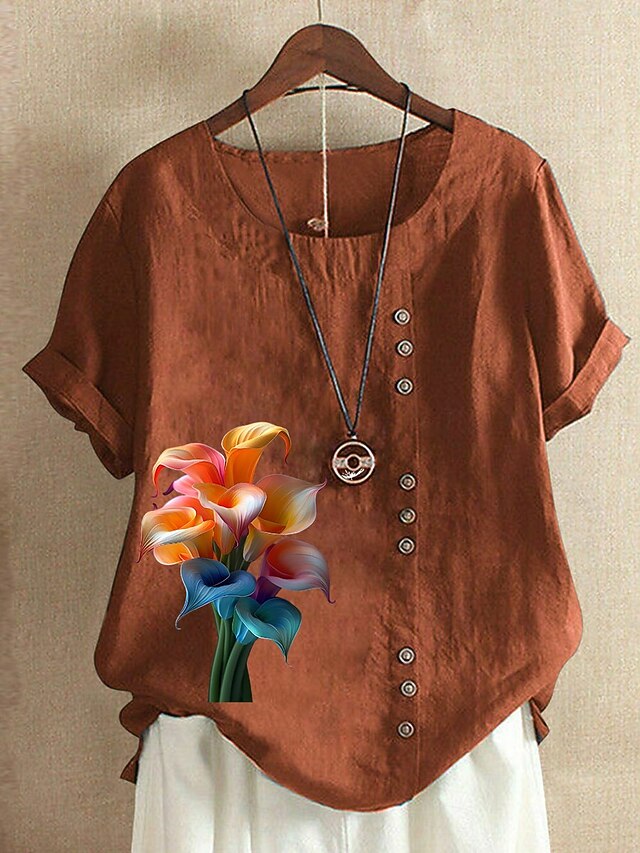 More information about Women's 100% Cotton Blouse Vintage Casual Crew Neck Daily Going out Buttons Print Maroon Grass Green Navy Blue Blue Purple