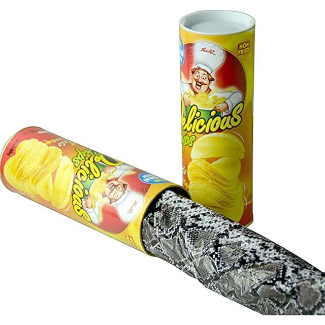 More information about April Fool's Day Gift Tricky Toy Spoof Potato Chip Snake Bouncing Snake Startle Tricky Potato Chip Bucket Snake 2pcs Yellow