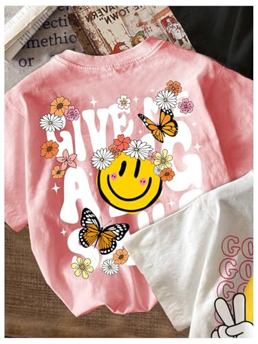 SweatyRocks Girl's 3 Pack Cartoon Graphic Tee Shirt Short Sleeve Crew Neck Funny Loose Tee Tops 2