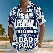 Men's Papa Dad Shirt Summer Shirt Button Up Shirt Short Sleeve Fashion Casual Holiday Dads Day Gifts Summer Spring Turndown 3D Print Collared Shirts Front One Pocket Blue 3